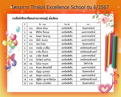 สัมภาษณ์นักศึกษาที่ผ่านเกณฑ์การคัดเลือกเบื้องต้น และมีความประสงค์เข้ารับการสอบสัมภาษณ์จากหน่วยงานสังกัดแผนกวิศวกรรม-เครื่องมือวัดและการควบคุม ตามโครงการ Thaioil Excellence School รุ่น 6/2567 ของกลุ่มไทยออยล์