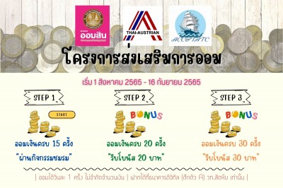 กิจกรรมส่งเสริมการออม 1 สิงหาคม -16 กันยายน 2565